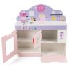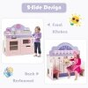 2-in-1design includes a kitchen and booth that provides kids with more fun to play fascinating roles as chefs or gourmets while parents or friends can pretend as customers on the other side. Coming with complete kitchen utensils such as a microwave oven, storage cabinet, baking oven, stove, spoon, etc., our toy kitchen set will let your children have a great cooking game time. As a functional and fun toy with ASTM certification, it can foster kids’ early brain development and help them learn more cooking skills.