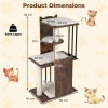 Our 112 cm tall multi-level cat tree is designed with 3 spacious levels plus a round jumping platform, offering plenty of choice for climbing sessions or relaxing naps. Sturdy metal tubes and a thoughtful structure ensure each level safely holds up to 20 kg, so cats of all sizes can play and lounge freely. Moreover, it includes natural sisal scratching posts, helping satisfy scratching instincts, paired with plush dangling balls to keep your cat entertained and active throughout the day. Every lounging spot features soft, skin-friendly cushions, and the removable design makes cleaning effortless. Finished in rustic brown with a cute cat ear accent, this unique cat tree blends playful charm and sophistication, offering both a fun activity center for your pet and an eye-catching piece for your living space.