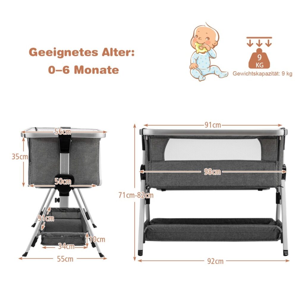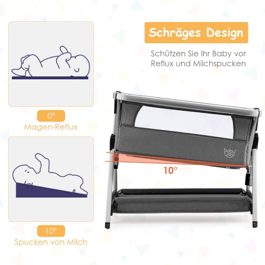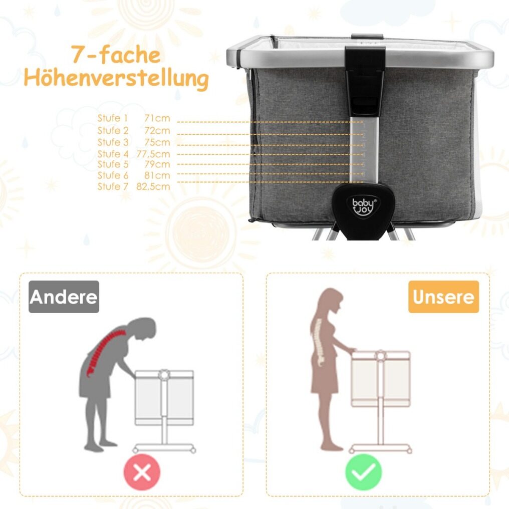 ● Folding Baby Bassinet with 7 Height Positions: Featuring folding design, this baby bassinet is helpful to carry and save storage space. And it has 7 adjustable heights, which is convenient for you to adjust according to your needs. And the tiltable design can effectively prevent the baby from refluxing and spitting milk.
