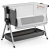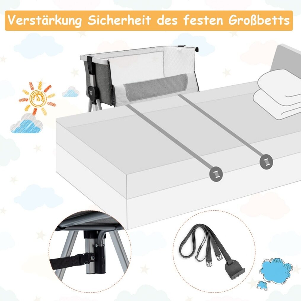 ● Detachable Sidebar and Large Storage Basket: The armrest on one side of the crib is detachable, so you can place it beside the bed or sofa and play with your baby easily. And the long fastening strap can firmly fix the crib to the parent's bed. The large storage basket under the baby crib provides ample space to store the baby's daily necessities.