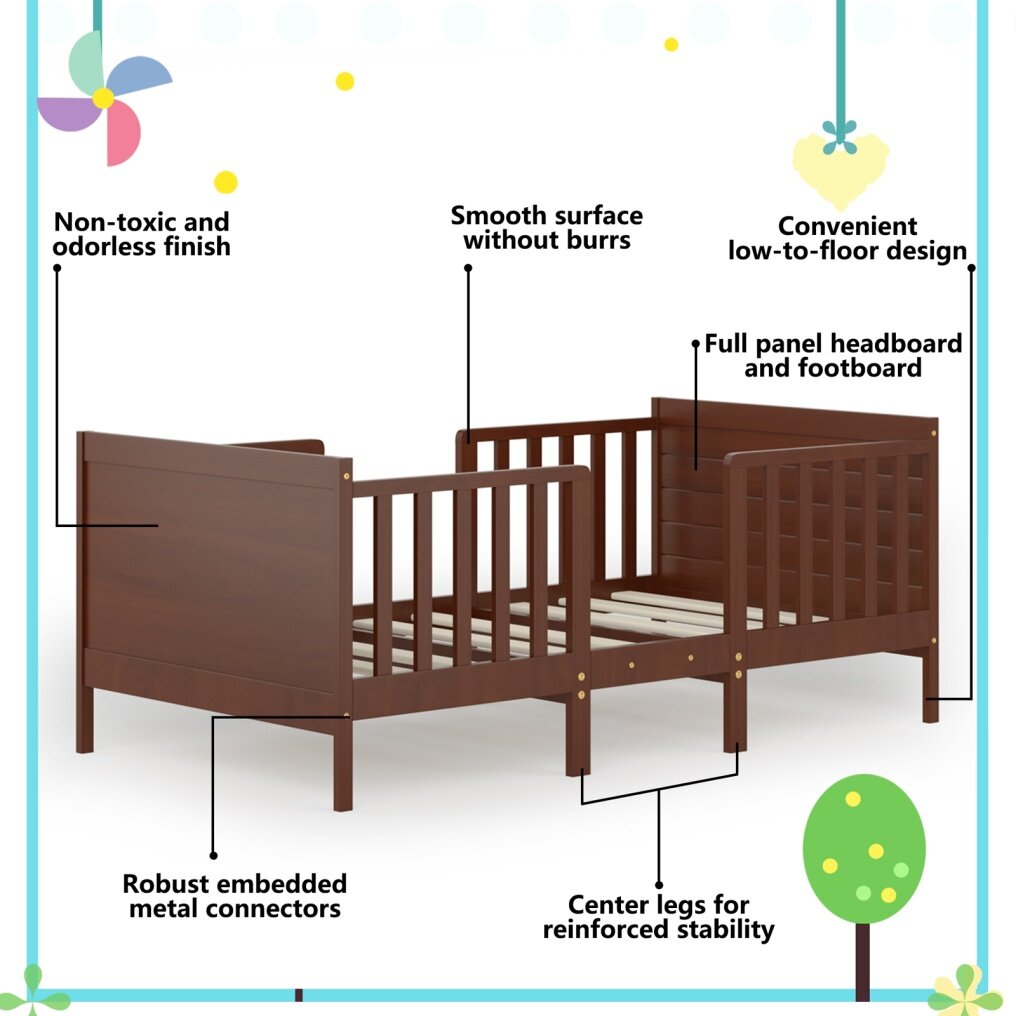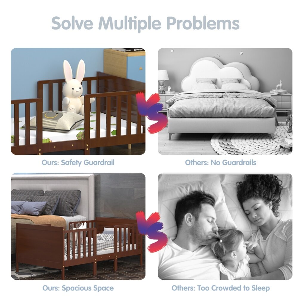 Made of rubberwood and poplar, the toddler's bed is environmentally friendly and durable. With 4 safety side rails, this kid's wooden bed prevents babies from falling off.