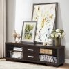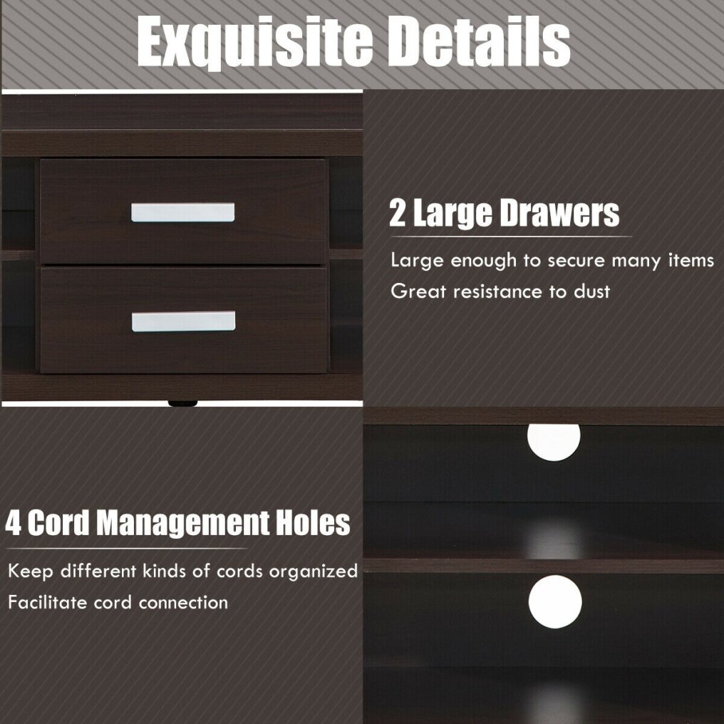 ● Customize Your Storage Space: The TV stand is designed with 2 drawers so that you can store your important items like movie collection inside and prevent dust entering. Besides, there are 2 open storage shelves to allow you store media devices. More, you can customize the storage space based on your requirements since the shelves are 3-postion adjustable.