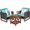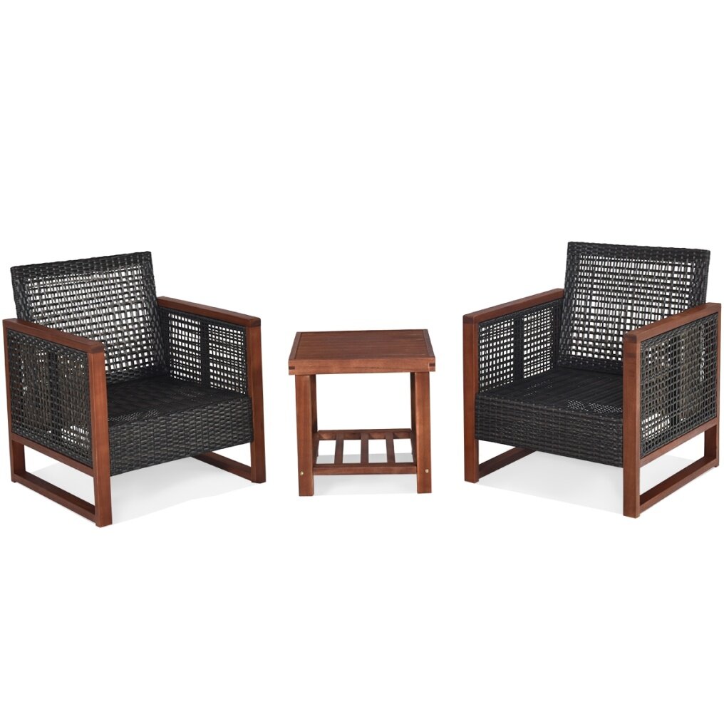 Made of rattan and acacia wood, this patio set is weather-resistant and durable enough for long term use.