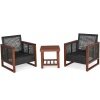 And the reinforced structure enhances stability and load-bearing capacity. The chair has wide armrests and backrest and is equipped with thick cushions, which can provide you with extreme comfort. What’s more, it also includes a coffee table with 2 storage racks for convenient use. The stylish design and classic appearance allow the conversation set to fit any surroundings. You can use it anywhere you like, such as a garden, balcony, or backyard.