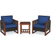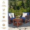 And the reinforced structure enhances stability and load-bearing capacity. The chair has wide armrests and backrest and is equipped with thick cushions, which can provide you with extreme comfort. What’s more, it also includes a coffee table with 2 storage racks for convenient use. The stylish design and classic appearance allow the conversation set to fit any surroundings. You can use it anywhere you like, such as a garden, balcony, or backyard.