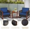 Made of rattan and acacia wood, this patio set is weather-resistant and durable enough for long term use.