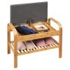 Are you looking for a practical and stylish shoe rack for your home? Our well-designed shoe rack with compact size is great for your house. It is a combination of a shoe rack and a bench that can hold shoes and offer a seat when changing shoes. And under the seat, there is additional storage space for you sundries such as shoe brushes, umbrellas and so on. The frame of rack is made of bamboo and the boards are connected with premium metal screws which ensure sturdiness and durableness. The generous design will well match your furniture and suitable to be placed in the entryway, hallway, living room, bedroom, bathroom, balcony, etc.