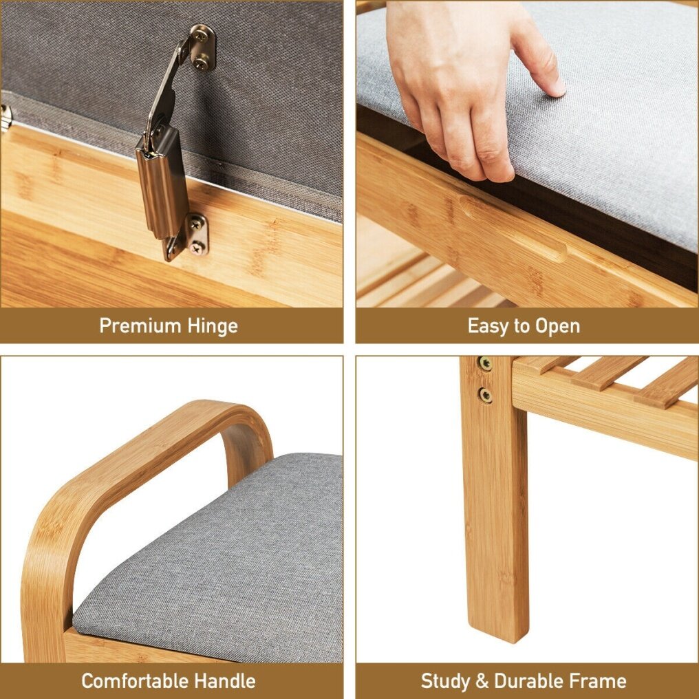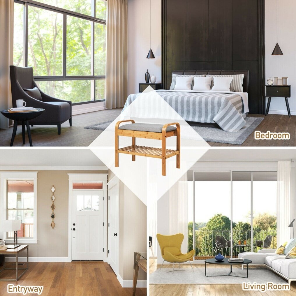 Thick & Comfortable Cushion: The cushioned seat is filled with high-density sponge, which has good elasticity for sitting to change shoes. And covered with breathable grey linen, the seat is comfortable to sit together and will not show the dirt.