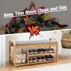 Sturdy Bamboo Frame: Made of premium bamboo, the shoe rack is sturdy and durable for long time use. The boards are fixed with galvanized steel screws to ensure a firm and stable structure, and can withstand the weight of about 150kg.