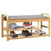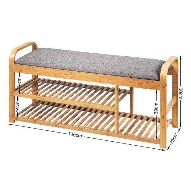 Are you still worrying about too many shoes in your hallway? Are you tired of squatting over to put on your shoes? Come and have a look at our shoe bench. Made of premium bamboo and high-density sponge, the shoe rack with sturdy frame is perfectly combined with sponge cushion to give you extraordinary comfort. And the round corners of the bench armrests are smooth and will not harm you or your family. The size of shoe rack is 100 x 33 x 50cm(L x W x H), which allowing you to store up 7 pairs of shoes. With instructions and required accessories, the shoe rack is easy to assemble in short time. Its stylish modern appearance and ample capacity make it suitable for a variety of occasions.