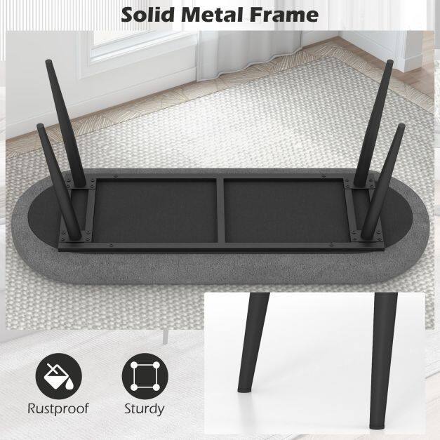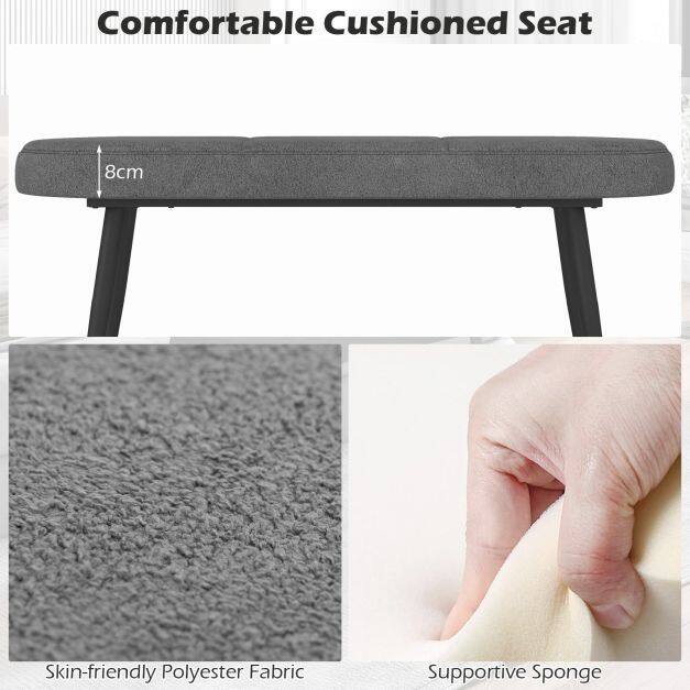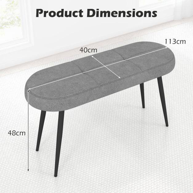 Measuring 113 cm x 40 cm x 48 cm (L x W x H), it can accommodate 2 people to sit at the same time. Premium polyester fabric cover and bouncy sponge filling make you feel comfortable while sitting on the bench. The rustproof metal legs allow it to bear a strong weight of 300 kg. In addition, it's equipped with non-slip foot pads to prevent the floor from scratches. You can place it in the entryway, hallway, living room, or bedroom for different uses.