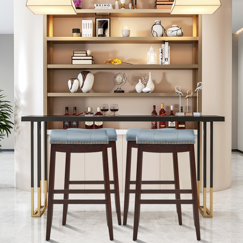 Are you eager to brighten up someplace with brilliant furnish? Then why not bring an effortlessly attractive look into your kitchen, restaurant or pub with this barstool. It will give you great satisfaction from contemporary design to unique saddle seat. The seat features soft upholstery and high resilience sponge shall let you feel more comfortable. Meanwhile, compared with other wood, rubber wood features better durability and toughness, and that’s why it is adopts rubber wood legs. In this way, sturdy and thickened rubber wood legs will support you powerfully when you sit in the front of bar counter to enjoy a drink. 4-Sided footrest can not only rest your feet but also plays the role of reinforcement. Thanks to simple structure and detailed instruction, the process of assembling the bar stool will take less time.