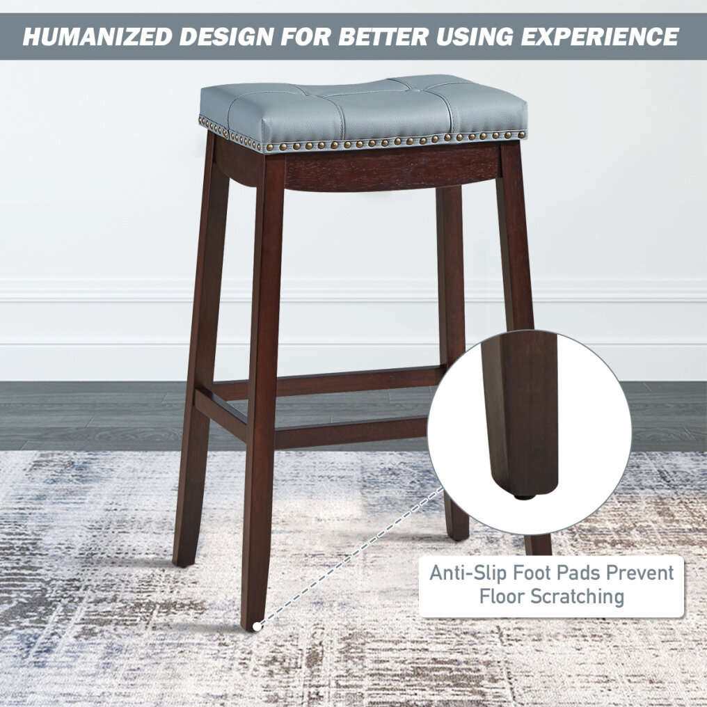 Stylish Design for Wide Applications: Various rivets around the seat that add aesthetic beauty to the bar stool. Stylish appearance makes it a perfect complement to either your dining table or kitchen counter. In this way, you can use it as bar stool to let yourself enjoy a drink or as dining stool to entertain your guests.
