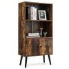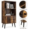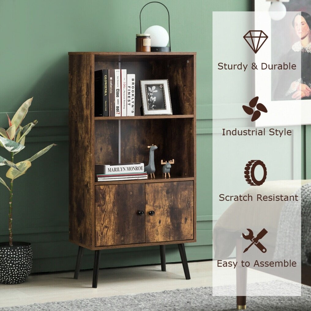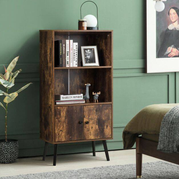 Adding a touch of rustic and vintage flavor into your home with this bookshelf! On the open shelf, you can hold and display items for easy access. In the closet, you can put some private sundries in. This bookcase can give you years of the company due to its sturdy frame and solid wood legs. The surface has been treated with sealing technology which makes it smooth and wear-resistant. With industrial and concise design, the cabinet is perfect for decorating your living room, study, and office. It is ideal for a small house as it can be placed in the corner with a small space occupation to help you to keep your room tidy and clean. And it is easy to install the bookcase according to instructions.