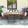 ● Modern Design for Wide Application: In a classical and stylish appearance, this dining set can match any outside style and is a great supplement to outdoor space. You can invite your family or friends to enjoy a relaxing meal with this 7 pieces patio dining set in your backyard, balcony, garden, etc.