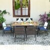 The spacious acacia wood tabletop provides plenty of space for you to prepare hearty dishes or drinks. What’s more, it can be used with an umbrella, so you still can enjoy your outdoor time in a hot day or rainy day. 6 ergonomic armchairs are equipped with soft cushions to relieve your fatigue, so that you will not be tired after sitting for a long time. This patio dining furniture set is a good choice to your backyard, balcony, patio, etc. Do not miss it!