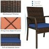 - PE wicker and powder-coated steel frame ensure weather resistance