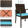 - PE wicker and powder-coated steel frame ensure weather resistance