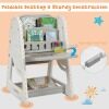 Large Storage and Folding Table: The table offers a 2-tier bookcase for storing children's favorite books, a pen tray and stationery under the whiteboard and a large space on the base for sorting and storing various things. The table top can be folded down to save space when not in use.