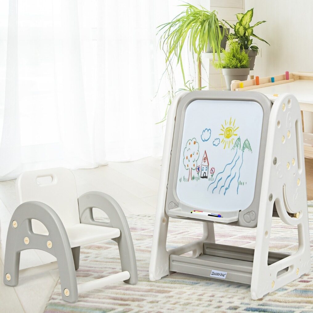 Lifting Whiteboard and Ergonomic Chair: This set of furniture guarantees a comfortable and suitable use for your children with the blackboard adjustable in 3 heights of 71, 85 and 100cm, and an ergonomic and stable chair with the seat and the extended backrest and the armrests arched for comfortable sitting and correct posture.