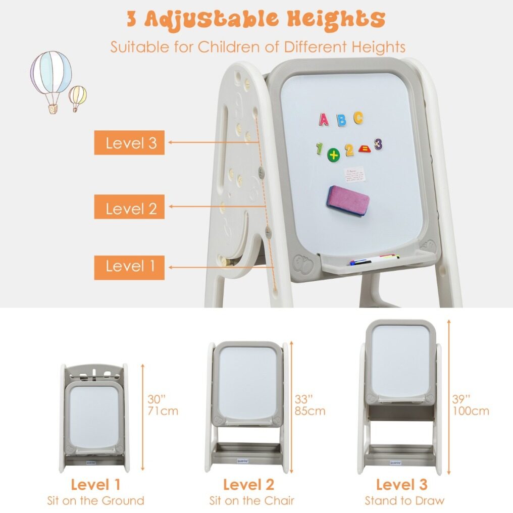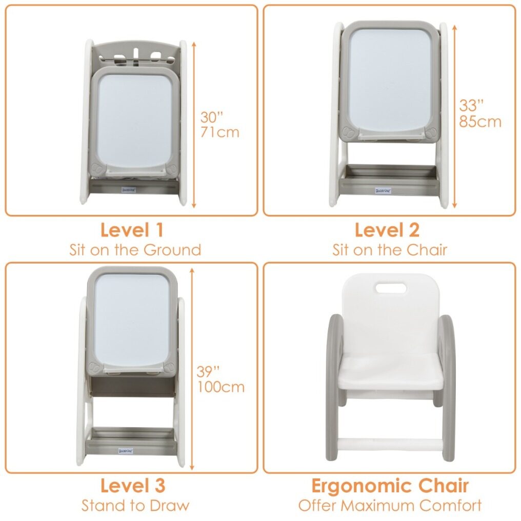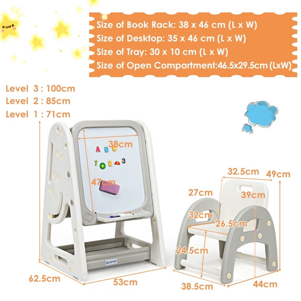 Dimension of kids art easel: 63.5 x 53 x 71 - 100 cm (L x W x H)