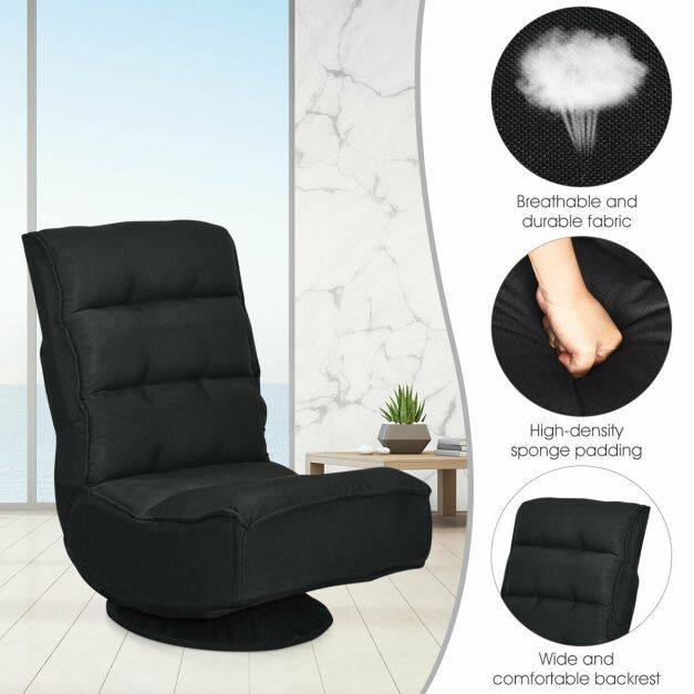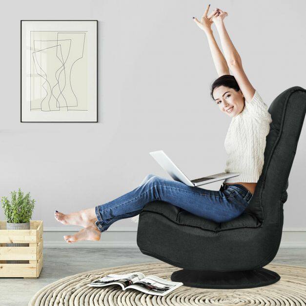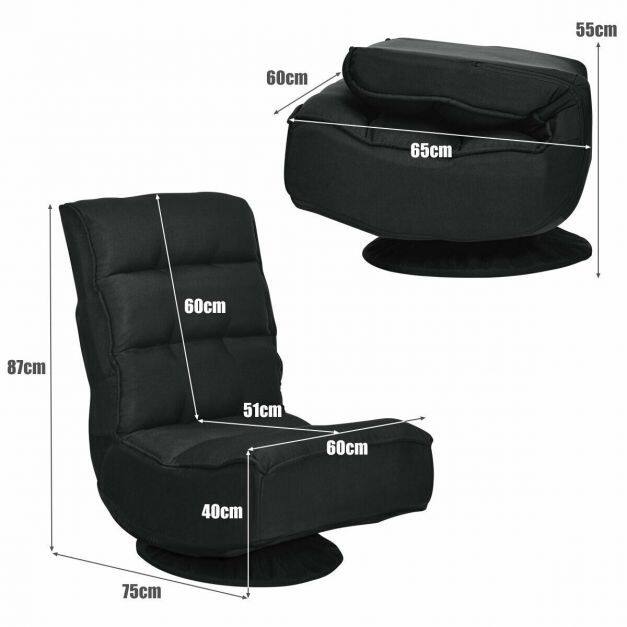 Sit comfortably in our adjustable swivel chair. This folding floor gaming chair is filled with high-density sponge and is soft to the touch. The high-quality fabric covering is breathable, tear-resistant and durable, and can be used for a long time. Compared with other common floor chairs, our uniquely designed floor game chair adopts a 360-degree rotating design to add more fun to your leisure time. Five adjustable backrest angles allow you to find the most comfortable sitting posture. In addition, this swivel chair is equipped with a removable bottom cover to protect your floor from scratches. It can be easily removed for cleaning when it becomes dirty. The backrest of this chair is also foldable for easy storage. The appearance is simple and modern, which can be perfectly matched with any home style.