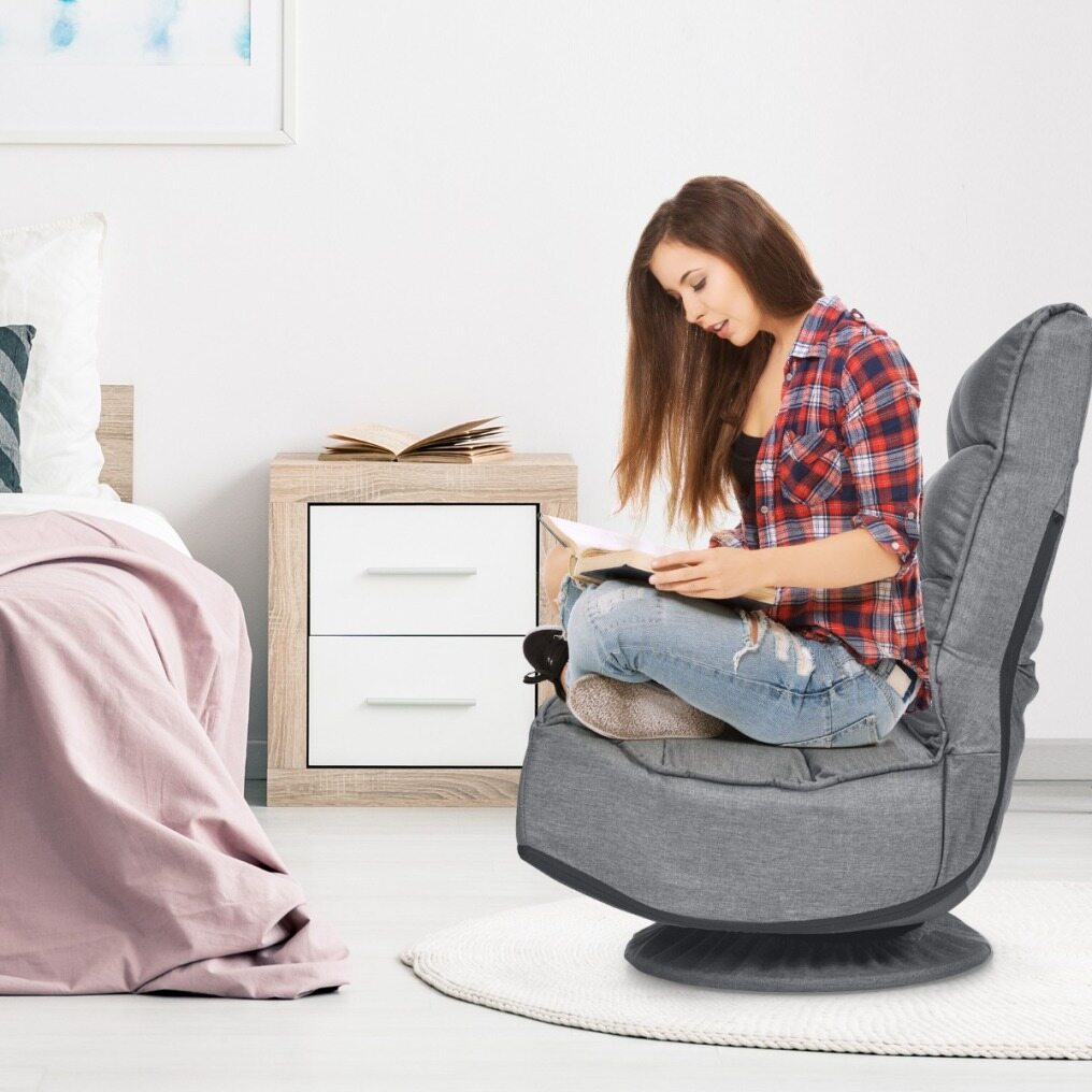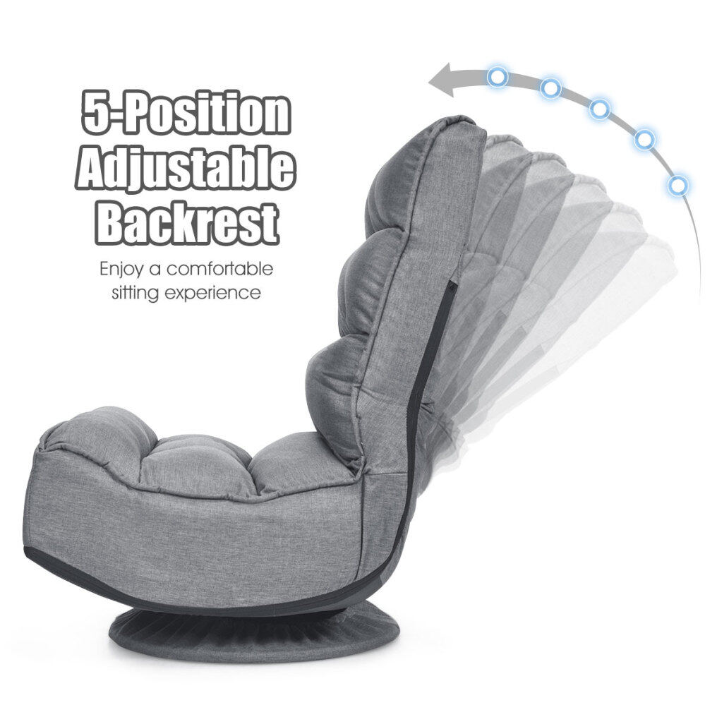 Sit comfortably in our adjustable swivel chair. This folding floor gaming chair is filled with high-density sponge and is soft to the touch. The high-quality fabric covering is breathable, tear-resistant and durable, and can be used for a long time. Compared with other common floor chairs, our uniquely designed floor game chair adopts a 360-degree rotating design to add more fun to your leisure time. Five adjustable backrest angles allow you to find the most comfortable sitting posture. In addition, this swivel chair is equipped with a removable bottom cover to protect your floor from scratches. It can be easily removed for cleaning when it becomes dirty. The backrest of this chair is also foldable for easy storage. The appearance is simple and modern, which can be perfectly matched with any home style.