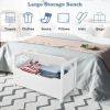 Ample Storage Space: This shoe bench is designed with a hidden space under the seat, where you can store shoes, socks, or other sundries, ensuring that your room is tidy and organized. Furthermore, the flip-up top design makes it convenient for you to take out at any time.