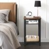 This end table is simply shaped to perfectly integrate into any decoration style. Featuring engineering board and iron frame, this table has high durability to provides a long time service for your family. Adjustable feet makes it stable in any surface. Ample storage space, including desktop and lower shelves, provides enough space for you to place remote control, books, ornaments, etc. It not only can be a coffee table in living room or bedroom, but also can be a entrance table, office table, etc.