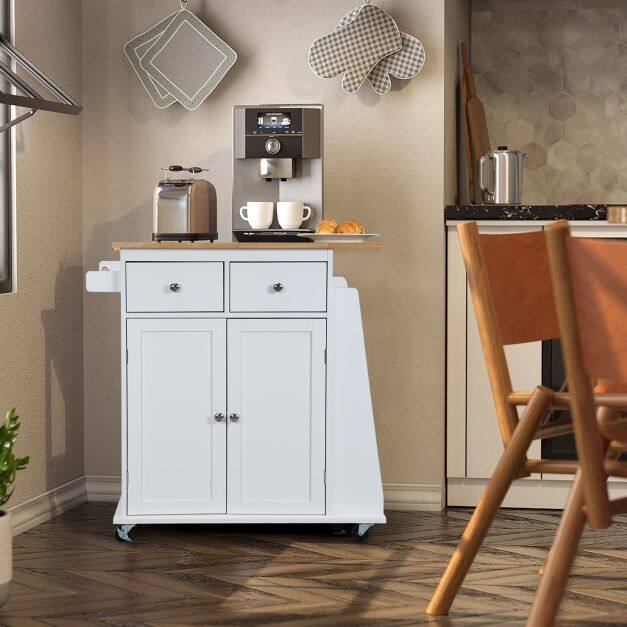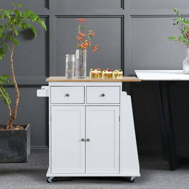● Elegant & Versatile Design: This rolling kitchen cart features a countertop with a natural wood color and a white/black cabinet to create an elegant appearance that fits any decoration. It can be used as extra storage space and counter space in the kitchen, living room, bedroom, or a mobile preparation station for cooking or barbecue.