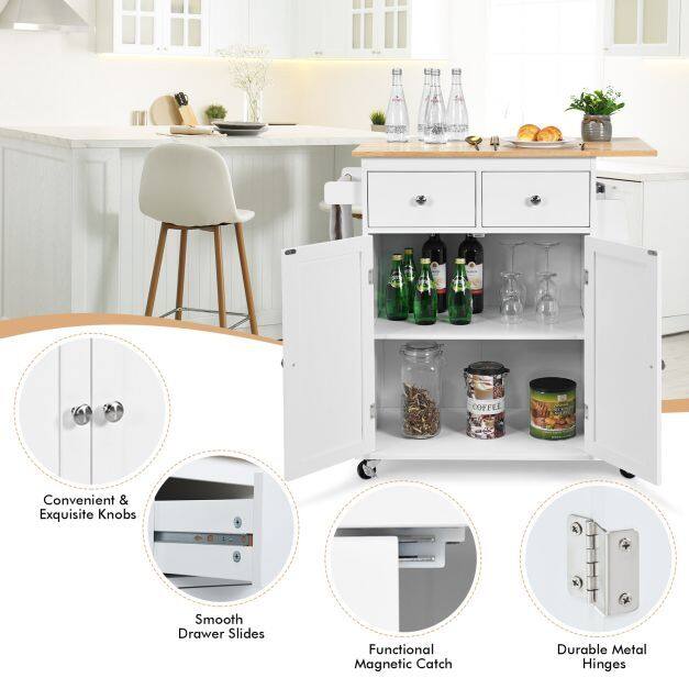 ● Durable & Sturdy Material: Built with rugged P2 grade MDF board and durable rubber wood countertops, the kitchen cart is eco-friendly and durable to last for long years. Besides, the surface is safely painted to give the kitchen cart a silky smooth surface and a more moisture proof advantages.
