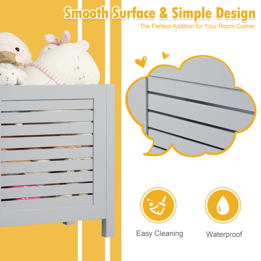 This toy box is made of durable and safe MDF material and can be used for a long time. With 44 lbs bearing capacity, you can put the kid's toys in this large storage space and make the room more tidy. Or you can also encourage your kids to organize toys by themselves. It is carefully designed, with a groove on the top lid to open the lid easily.