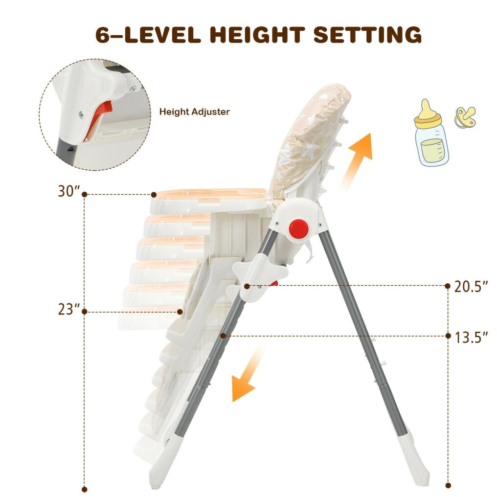 The 6-position height adjustment allows you to find the most suitable height to feed your baby. The adjustable backrest angle allows the child to enjoy the ultimate comfort whether it is eating or resting. It is worth mentioning that the distance between this double-layered tray and the backrest can be adjusted based on the age of the child. The upper layer of the disassembled double-layer tray can be cleaned in the dishwasher. When not in use, the entire tray can be hung on the leg to facilitate storage. Meanwhile, its folding design is specially designed for families with small spaces. The waterproof PVC fabric features good splash resistance and water stains are not easy to penetrate. In addition, the 5-point safety belt effectively prevents the baby from falling.