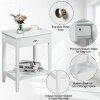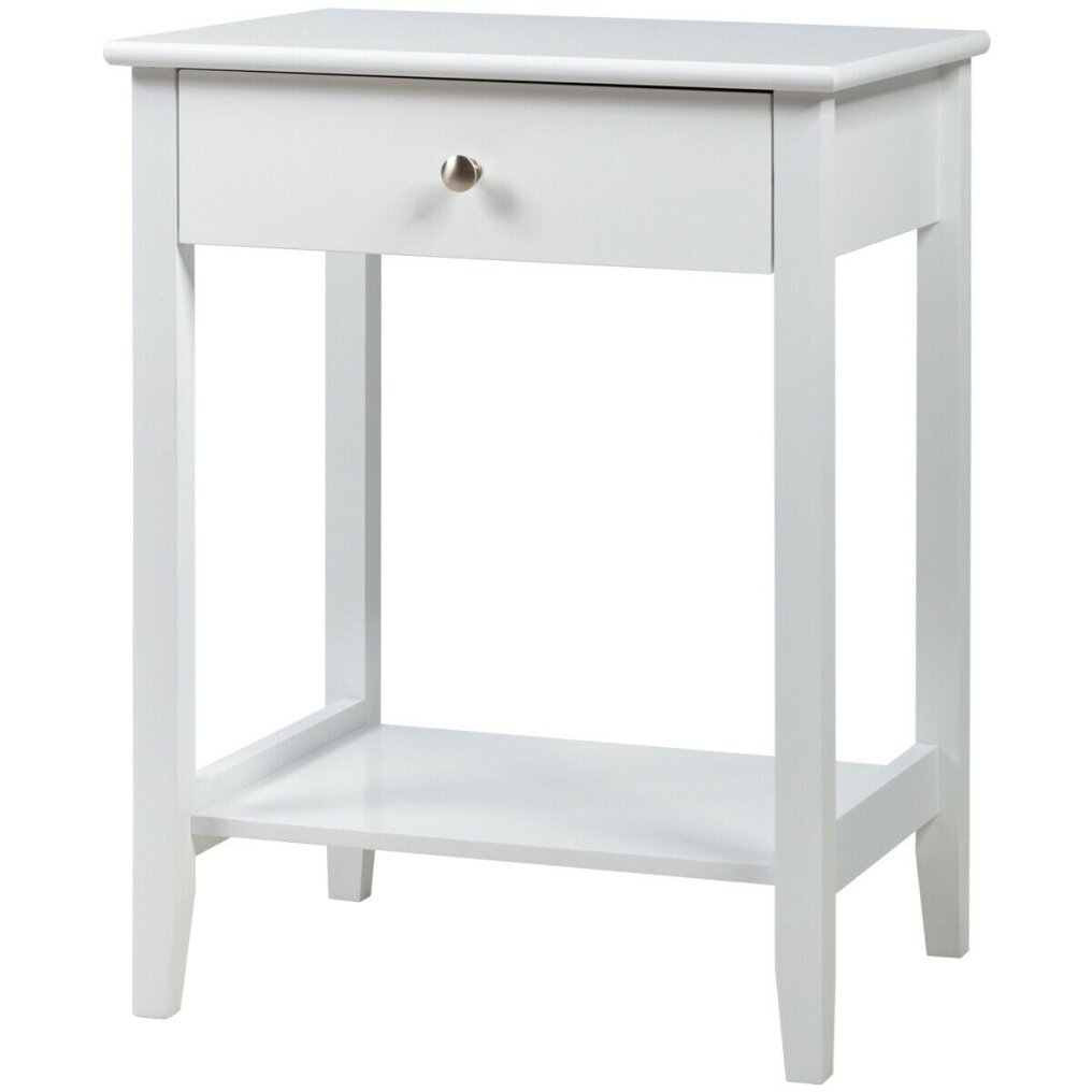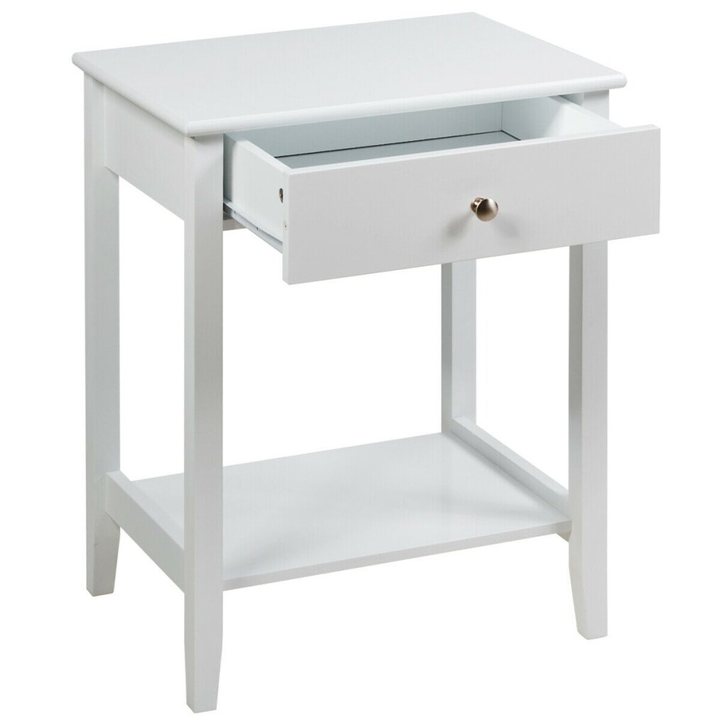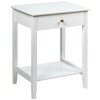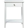 Smooth slides and tiny handle of this table are designed for convenient use. Combined with stylish appearance and great practicality, the side table is a great addition to your home. As for the quality, made of premium MDF board with NC paint, this simple yet solid table allows you to use it for a long time. Moreover, 4 solid pine wood legs enhance stability without any wobbliness.
