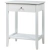 - Includes a spacious tabletop, pull-out drawer, and bottom storage shelf