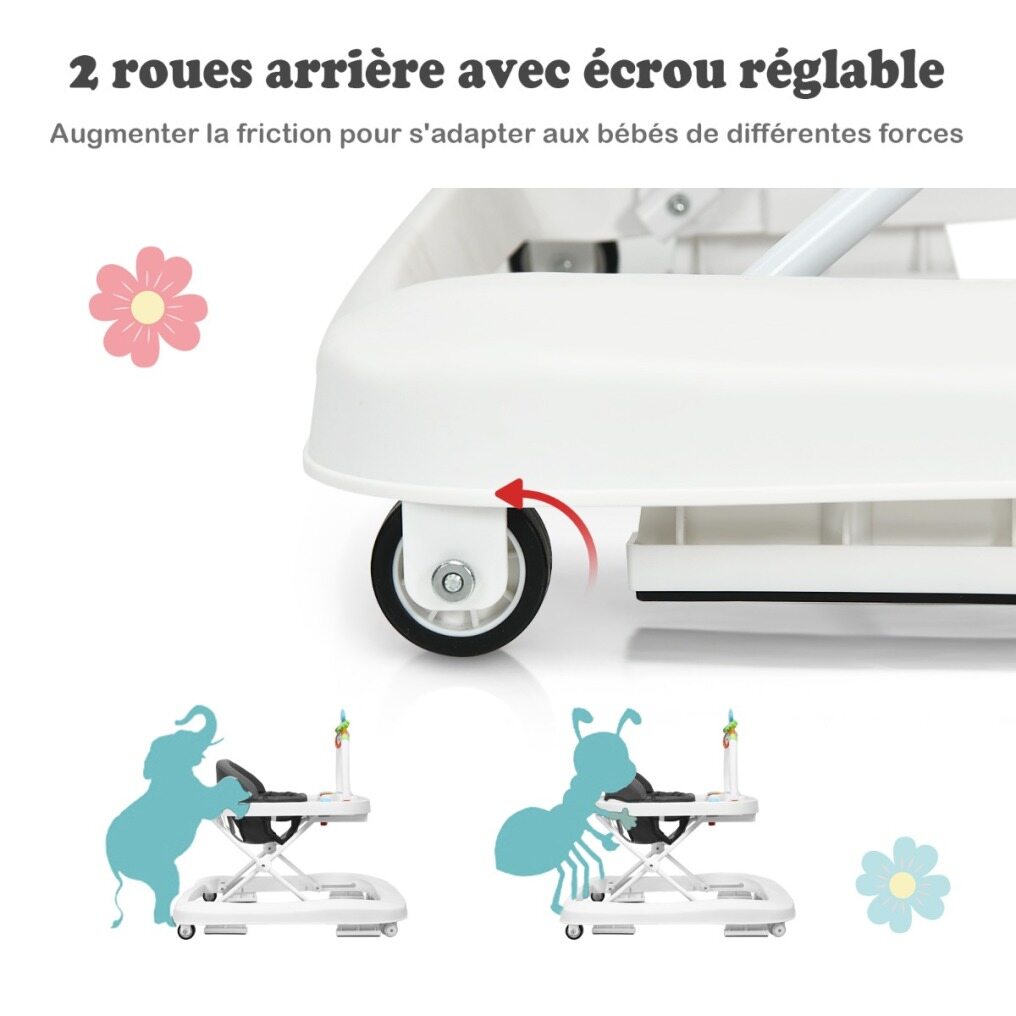 ● Adjustable Height & Speed: Featuring 3 fixed adjustable positions in 14", 15" and 16", this baby walker will accompany babies' growth and suitable for babies of different heights. And rear-wheel with adjustable nut increases the friction to a simple or difficult walking exercise.