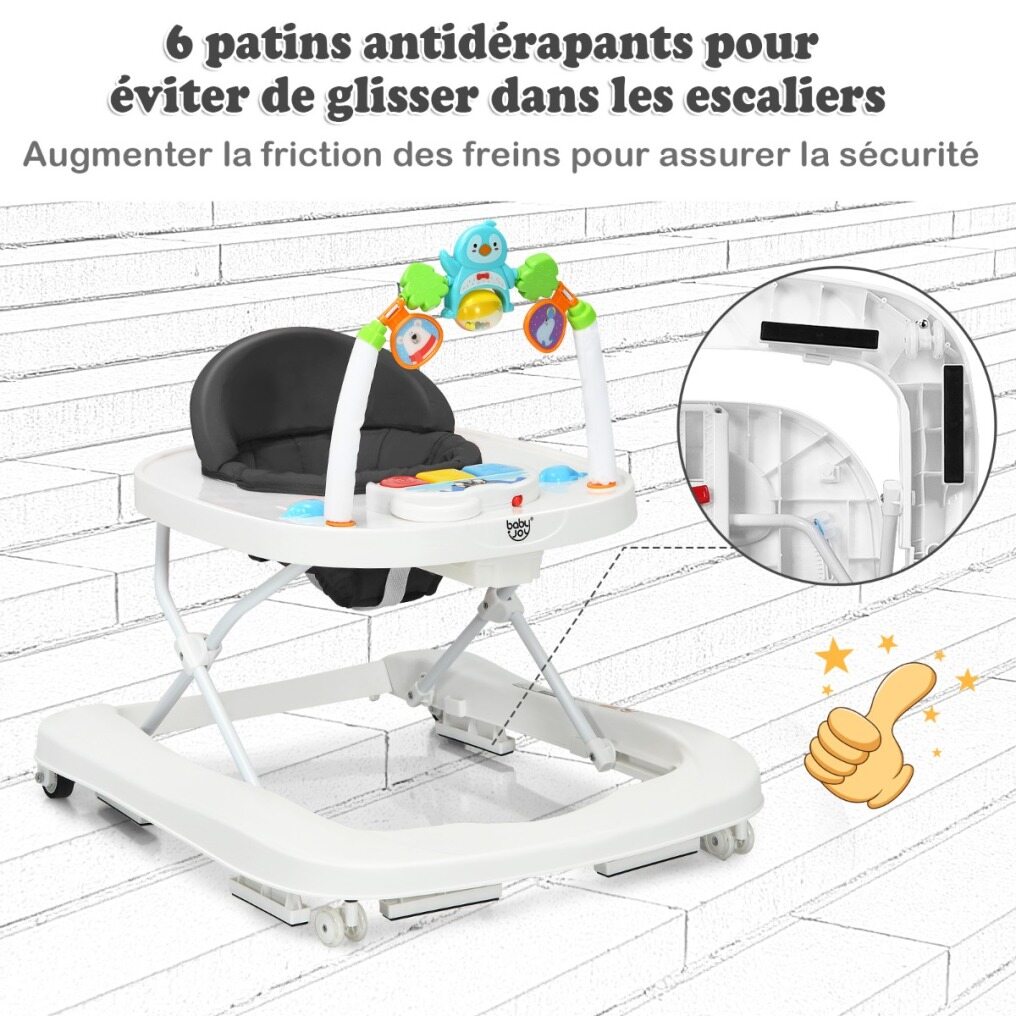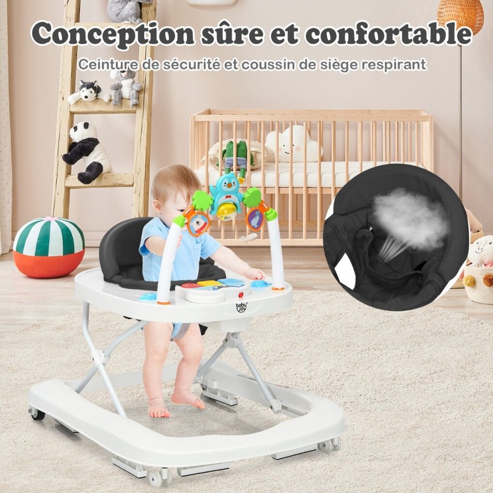 The detachable music board and toy bar offer endless fun that will stimulate your baby's learning and develop their hand-eye coordination.
