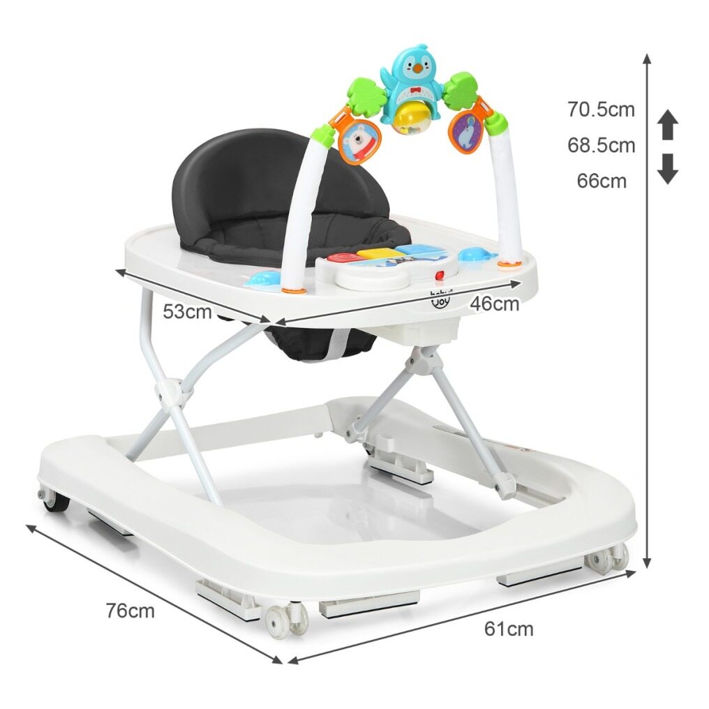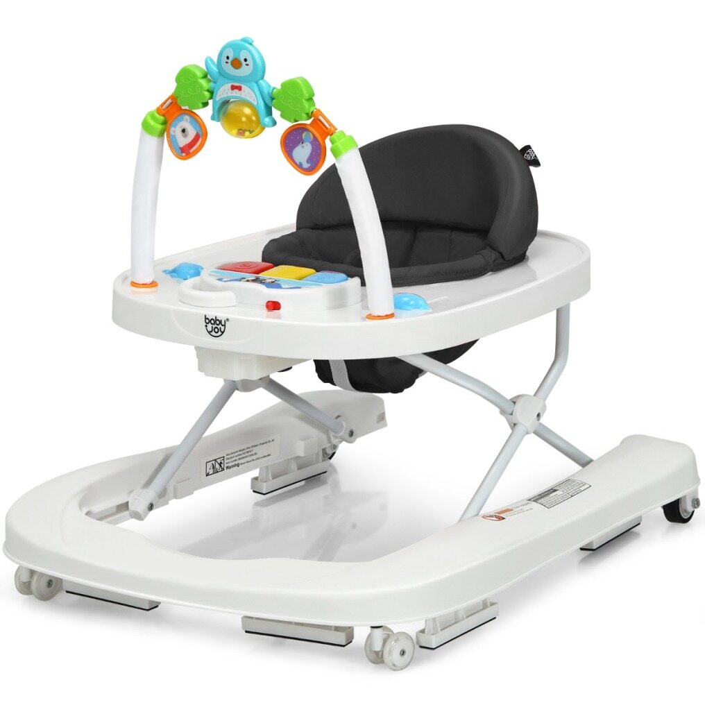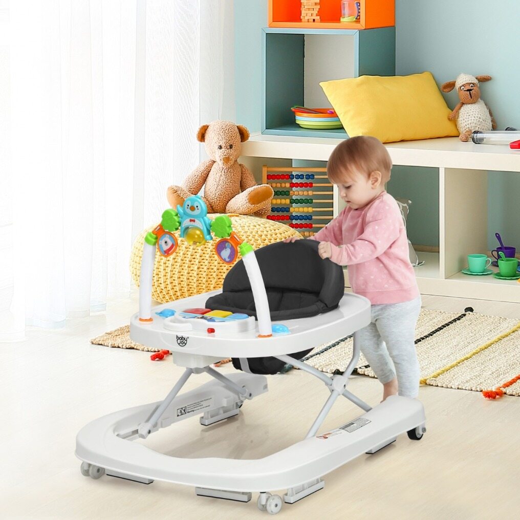 2-in-1 Foldable Baby Walker with Adjustable Heights-Black