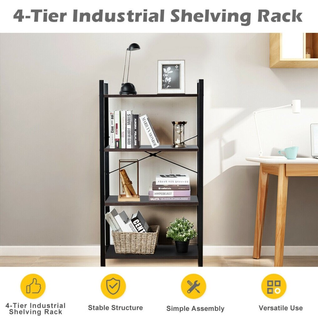 - 4-tiers open shelves to meet various storage and display needs