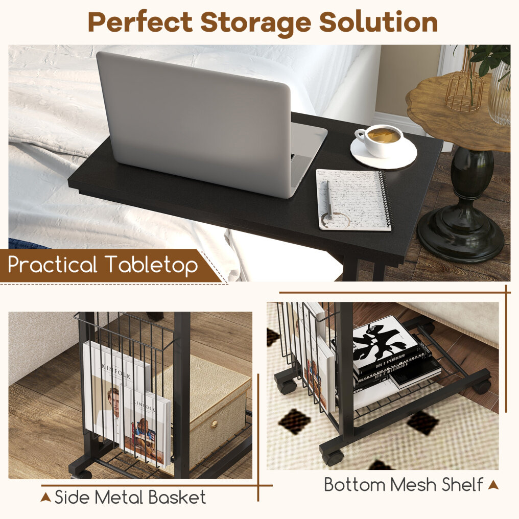 • Convenient: Lower steel mesh provided extra storage space for books, magazines , etc. The "C" shaped snack table ,is easy to slide the feet of this table underneath a sofa or bed so the table can be right next to you, or in between two people on a couch.