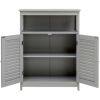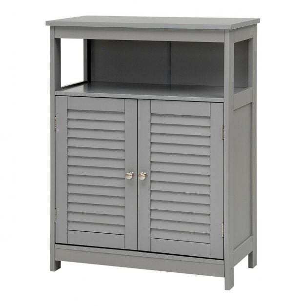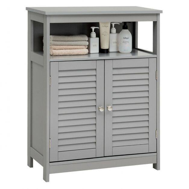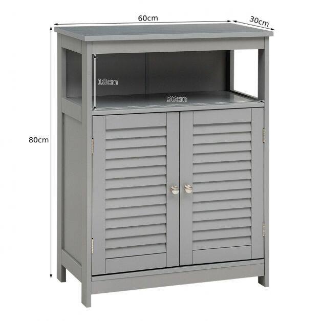Our bathroom cabinet with double doors is the perfect piece of furniture. The simple and modern shape with a neutral color brings a breath of fresh air into your home and can be integrated into almost any furnishing style. The smooth and lacquered surface gives the bathroom cabinet water-repellent properties and makes it ideal for humid environments. The spacious shelves with height-adjustable shelves and an open shelf offer you enough space to store bathroom items and decorations. 2 practical lamellar doors effectively protect your objects from dust and at the same time ensure good ventilation so that mold has no chance. Equipped with metal handles, assembly is quick and easy!