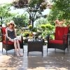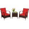 3 Pieces Patio Conversation Rattan Furniture Set with Cushions-Red