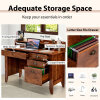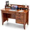 The 48-inch generous surface creates an ideal area for your study and work. It also includes a slide-out bottom drawer, two small side drawers and a large filing drawer for organized storage. A cable management hole can effectively reduce desktop clutter. What's more, the monitor shelf at the top helps you form a correct sitting position to relieve back pressure. This desk is the perfect solution for home or office that can be widely used as a computer desk, writing desk, study desk, gaming desk and more. The retro style adds a hint of elegant glamour to your room and never goes out of style.