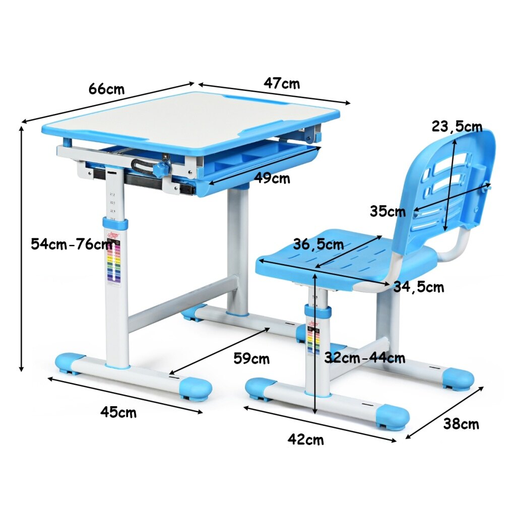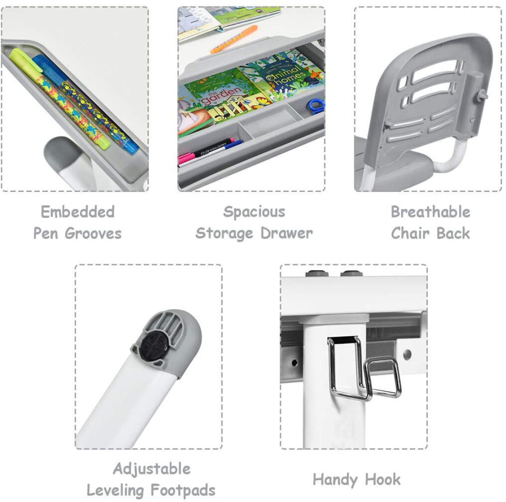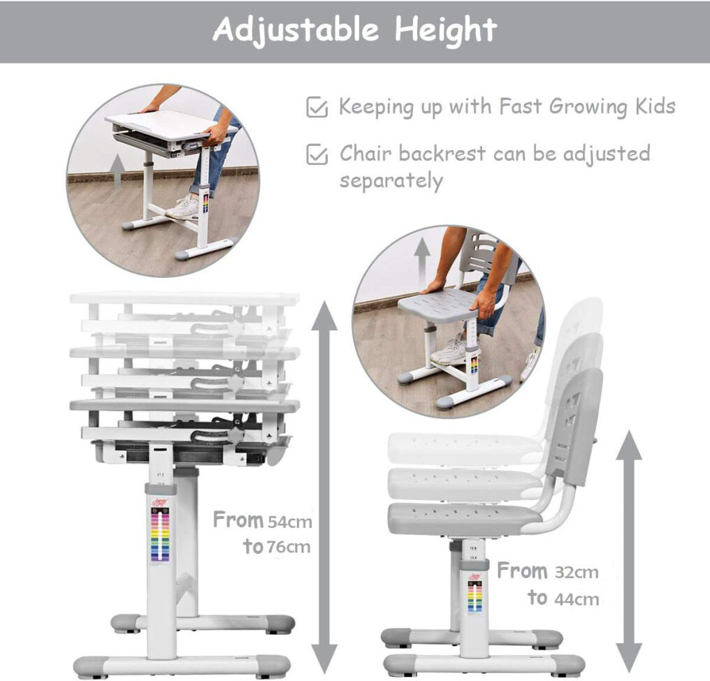 ● Height Adjustable: You can easily adjust height of table and chair according to the height of the child, accompanied with children growth for long-term use. It' s easy to read, write or draw for children because the desktop angle can be adjusted from 0 degree to 40 degrees, so that meets kid’s various needs.
