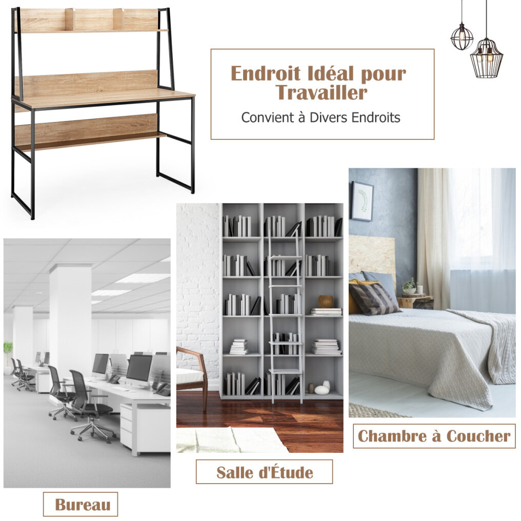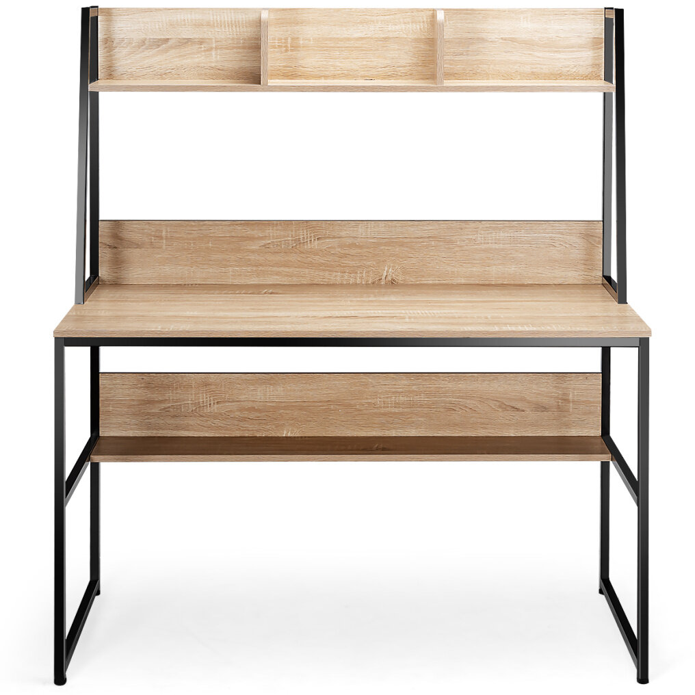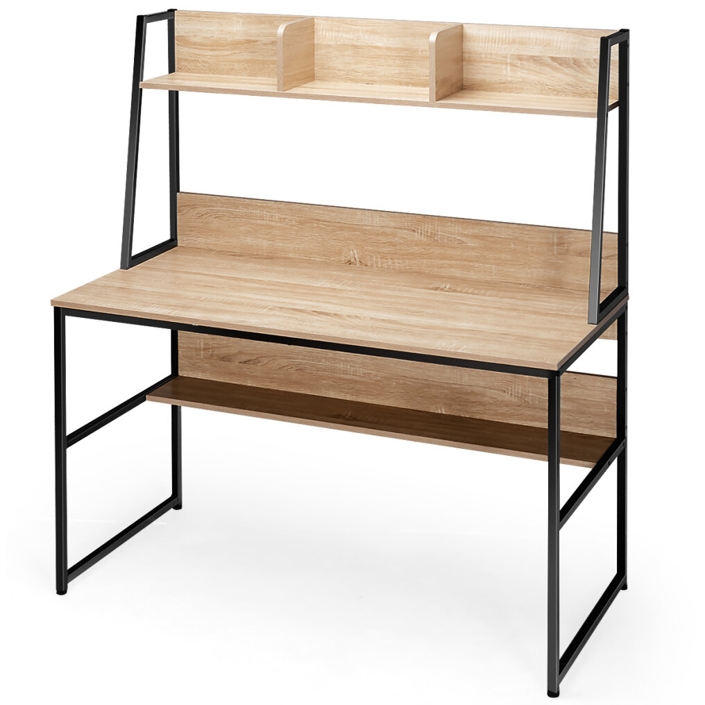 It provides plenty of space for your monitor or laptop. Combining with the bookshelf and hutch, the writing table gives extra storage for your books and some office accessories. With the compact size, the study table maximizes your limited space while providing a spacious working area. After owning this computer desk, the mess and clutter come to an end. Enjoying with durable metal frame, the computer desk features great stability and large weight capacity. Additionally, with the elegant and modern design, this computer chair serves as a decoration, which perfectly matches your living room, bedroom, office, etc