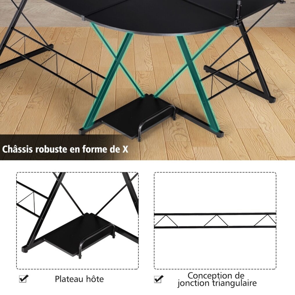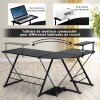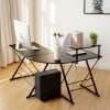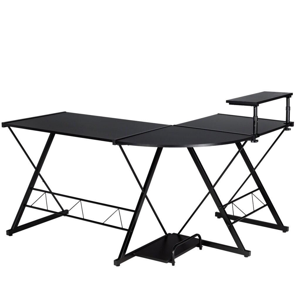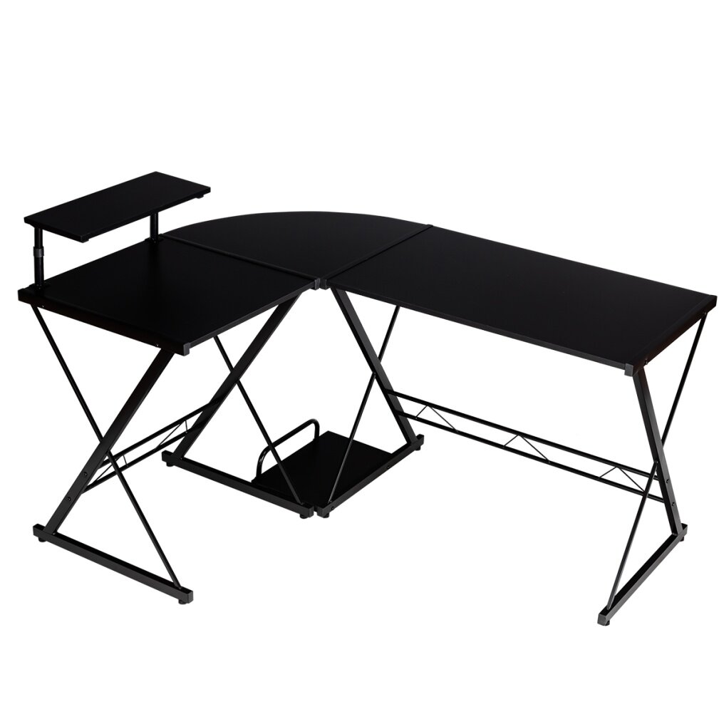 The L-shape desk can be divided into two separate tables to meet your various needs. And the movable monitor can be freely adjusted according to your habits. Snugly fitting in a corner, the desk maximizes your limited space while providing a spacious working area. After owning this computer desk, the mess and clutter come to an end. Constructed of durable iron pipe, the computer desk features great stability.