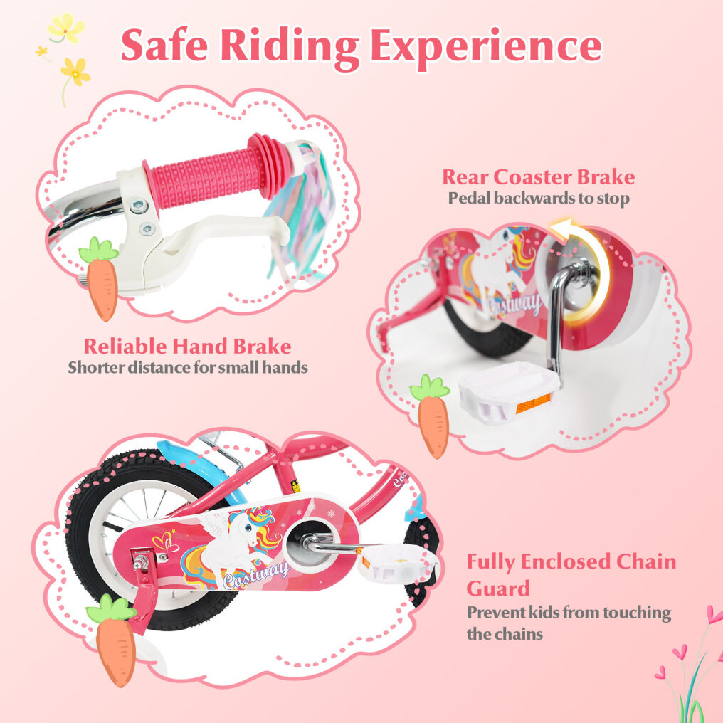 ● Dual Brake System for Safe Riding: Front handbrake offers shorter distance for kids to grasp. Rear coaster brake pedals backwards to stop the bike. Moreover, the children bike is fitted with fully enclosed chain guard for safety. It also complies with ASTM/CPSIA for safe and reliable use.