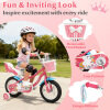 ● Lovely Look with Basket and Doll Seat: The vibrant colors and charming style appeal to little girls. The 12/14/16/18-inch girl bike has a doll chair with a fixing strap to take kid's favourite doll. The cute woven storage basket can store snacks, toys, flowers, or other items. The bicycle bell and colorful ribbon bring added fun and enjoyment.