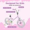 Safe and Steady Riding Experience: Equipped with anti-crack and shock-absorbing tires, the kids bike ensures a smooth and steady ride on asphalt roads, cement roads, brick roads, and more. 2 detachable training wheels help beginners keep balance and pedal independently. Moreover, there are front and rear reflectors as well as wheel reflector to keep kids visible when they ride at night, adding security.