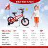 ● How to Select the Right Size: Note: Please measure kids inseam and compare with saddle height to check if the rider can touch the ground. It is recommended to refer to the bike size chart before purchase. Please prioritize fit over age range when choosing.